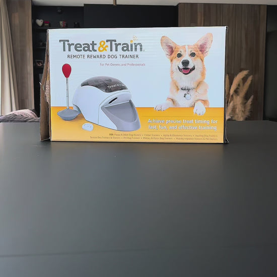 Bij Woefwaf vind je de originele Treat&Train® Remote Dog Trainer inclusief de tas van Treat&Train®: een innovatief beloningssysteem waarmee je je hond op afstand traint via positieve bekrachtiging. Dit toestel is speciaal ontworpen om gewenst gedrag aan te leren in situaties met afleiding, zowel in huis als tijdens training of sport.